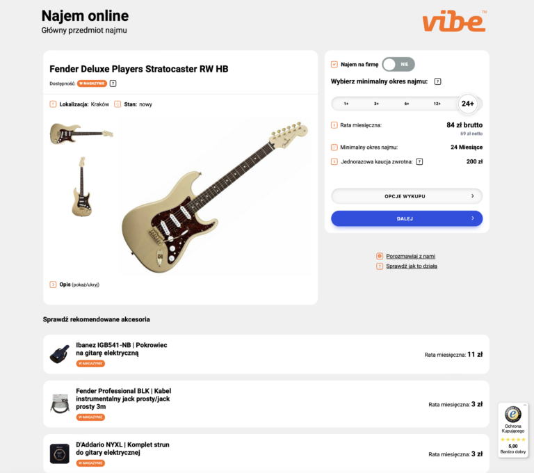 Wynajem instrumentów muzycznych jest bardzo prosty. Wystarczy wybrać przycisk „Wynajmij” na stronie danego produktu, a następnie wypełnić krótki formularz.
